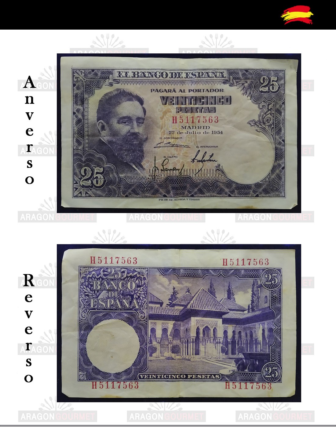 1954 Albeniz - Last 25 peseta bill that circulated in Spain.